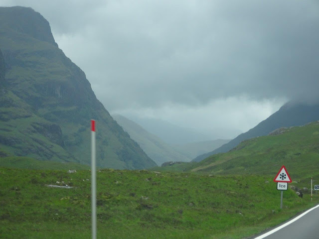 The Glencoe Valley is one of the most beautiful in Scotland because of its high mountains and numerous lakes and waterfall. In fact, it was the location that was chosen for Hogwarts Castle in the movies. I drove through part of it in 2008, but the weather was a lot nicer than it was this trip. It has been cold, cloudy, rainy, and more rainy, so photos are not the best.